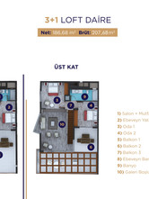 The Sirius Loft Risaids project, which is established by Sirius Construction Company, consists of one building with 33 apartments and stores. The project provides 1+1 loft apartments options with a total area Loft with a total area of 207.68 square meters, a detailed area of 186.68 square meters and 1+3 apartments with a total area of 159.05 square meters and a detailed area of 138.05 square meters?